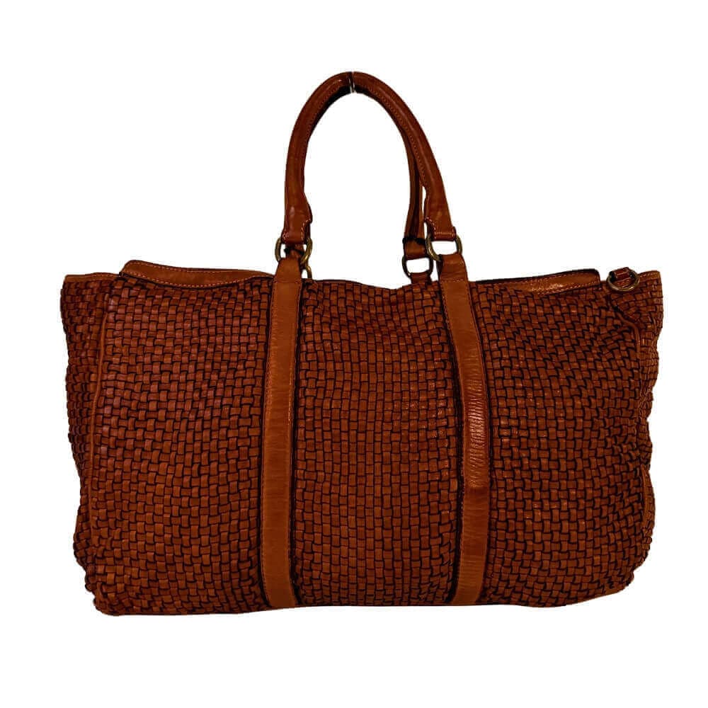 Kožená proplétaná cestovní taška Marlen koňak