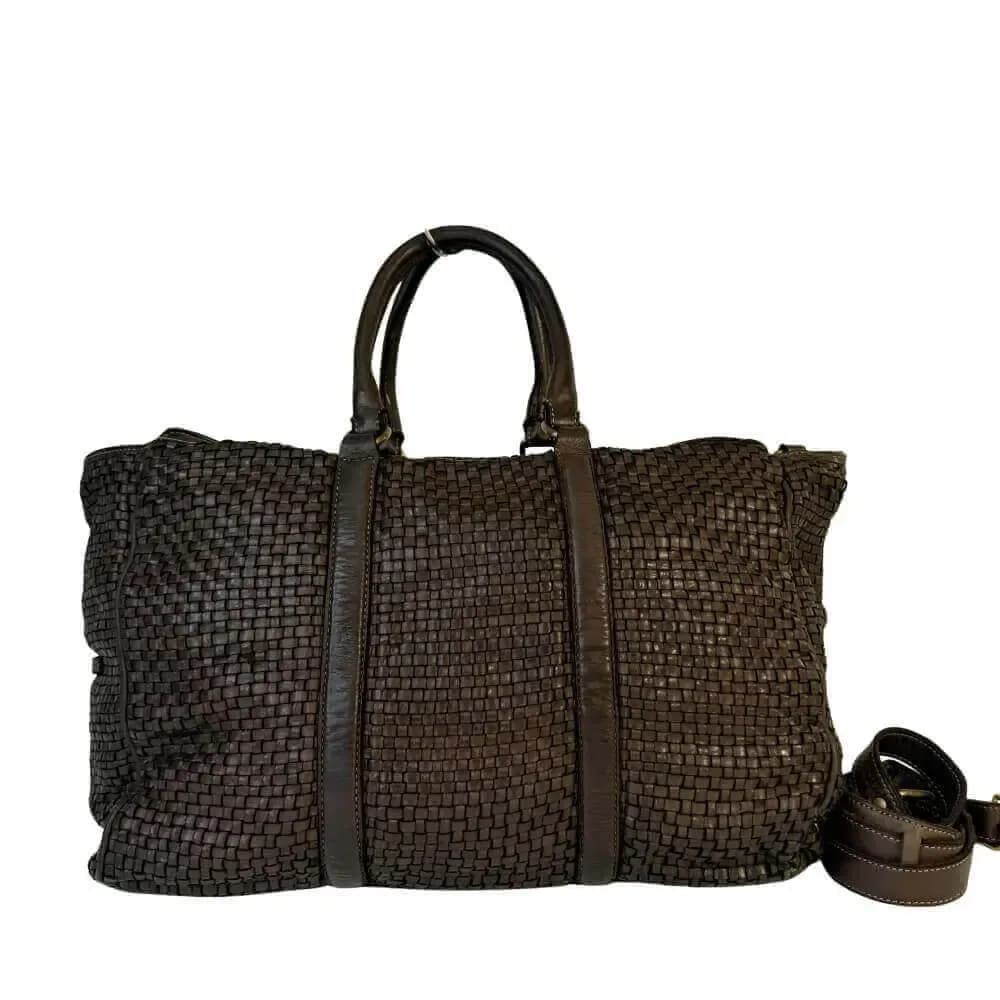 Kožená proplétaná cestovní taška Marlen tmavě hnědá