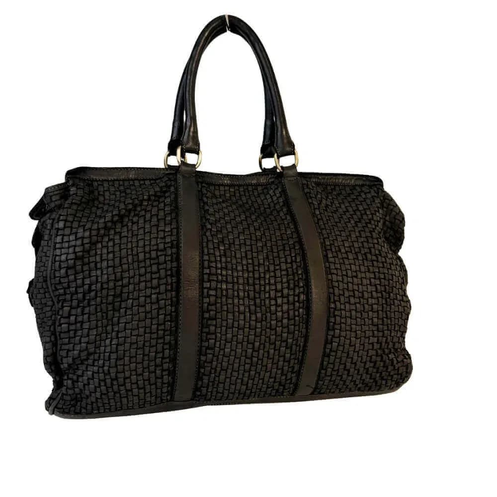 Kožená proplétaná cestovní taška Marlen černá